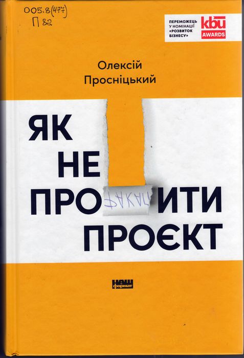 Б52598 005.8(477) П82 Просніцький О. В. Як не профакапити проєкт / О. В. Просніцький. – 2-ге вид. – Київ : Наш формат, 2025. – 512 с. Чому знання і досвід в управлінні проєктами, набуті в різних країнах, масово не приживаються в Україні? І це попри те, що існує безліч вартих уваги праць західних авторів. Олексій Просніцький у цій книжці зібрав проєктне управління (з усіма його складниками та інструментами) в єдине структуроване середовище і, що найголовніше, проілюстрував його десятками прикладів з українського сьогодення. А також подав 12 бізнес-кейсів, які написали колеги з найкращих українських компаній у різних сферах.