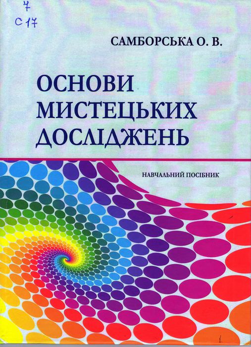 Б52607 7 С17 Самборська О. В. Основи мистецьких досліджень : навч. посіб. / О. В. Самборська. – Хмельницький : ХНУ, 2025. – 162 с. : табл. Висвітлено сутність та особливості організації наукового дослідження у мистецькій галузі, охарактеризовано основні види і форми наукової роботи здобувачів освіти.