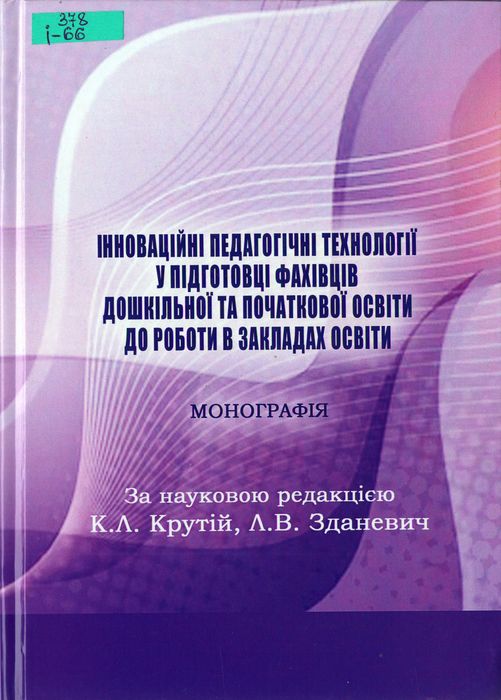 А47771 378 І-66 Інноваційні педагогічні технології у підготовці фахівців дошкільної та початкової освіти до роботи в закладах освіти : монографія / М-во освіти і науки України, Хмельниц. гуманітарно-пед. акад. ; за наук. ред. : К. Л. Крутій, Л. В. Зданевич. – Хмельницький : Цюпак А. А., 2025. – 408 с. : табл. У монографії висвітлено особливості професійної підготовки здобувачів вищої освіти спеціальності А2 Дошкільна освіта та А3 Початкова освіта в контексті викликів сьогодення.