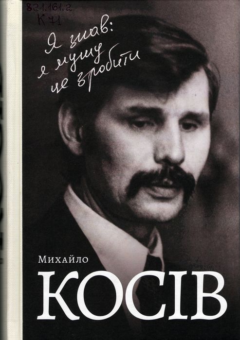 Б52710 821.161.2 К71 Косів М. В. Я знав: я мушу це зробити / М. В. Косів. – Дрогобич : Коло, 2025. – 464 с. : фот. Автобіографічна розповідь письменника, літературознавця, музейника, дисидента, політв’язня, політика, народного депутата України 1990 – 2012 рр., співавтора Декларації про державний суверенітет України, законодавчих актів про формування Збройних Сил України, Конституції України та багатьох законів, невтомного громадського діяча Михайла Косіва.