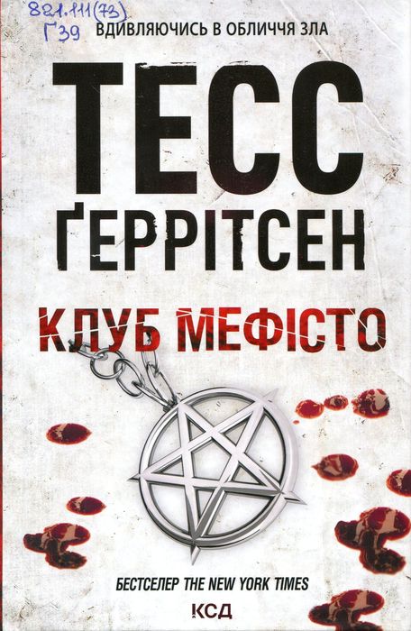 П1309-5 821.111(73) Г39 Геррітсен, Тесс. Клуб "Мефісто" : роман. [Кн. 6] / Т. Геррітсен ; пер. з англ. О. Оксенич. - Харків : Клуб Сімейного Дозвілля , 2023. - 384 с. Це Різдво мало стати дивом. А перетворилося на кошмар. На очах Джейн Ріццолі руйнується багаторічний шлюб її батьків, а подруга Мора зізнається у гріховних стосунках зі священником. Одне за одним відбуваються моторошні вбивства, схожі на ритуальні жертвоприношення. Шокована детектив Ріццолі починає свою звичну роботу: пошук убивці.