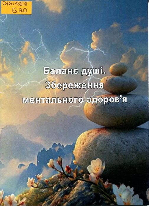 А47959 016:159.9 Б20 Баланс душі. Збереження ментального здоров`я : бібліогр. покажч. / Департамент інформаційної діяльності, культури, національностей та релігій Хмельниц. облдержадмін., Хмельниц. ОУНБ ; уклад. Л. Л. Купчинська ; ред. Л. І. Марцонь ; відп. за вип. К. А. Чабан. - Хмельницький : Монускрипт, 2025. - 44 с. Бібліографічний покажчик Хмельницької ОУНБ «Баланс душі. Збереження ментального здоров`я» укладено з метою допомогти читачам віднайти потрібні книжки та матеріали для підтримки психологічної рівноваги, розвитку навичок самопізнання та формування здорового способу життя. В покажчику бібліографічні описи книг, які є в книгозбірні, супроводжуються шифрами їх зберігання у фондах бібліотеки. Для зручності пошуку укладено алфавітний покажчик авторів та назв книг.
