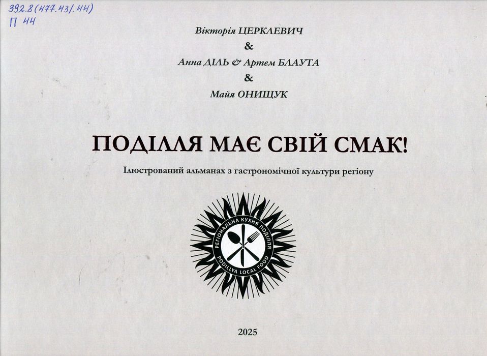 А47756 392.8(477.43/.44) П44 Поділля має свій смак! = Podillia has its own Taste! : іл. альм. з гастроном. культури регіону / авт.- упоряд.: В. Церклевич, А. Діль, А. Блаута та ін. - Хмельницький : Федоченко С. О., 2025. - 152 с. «Поділля має свій смак!» - це не просто кулінарна книга на кшталт збірки рецептів. Це дослідження та історична подорож, поєднана з культурною місією. Фактично гастрономічний дороговказ й, водночас, практичний кейс для тих, хто цікавиться регіональною кухнею, туризмом та гастрокультурою.