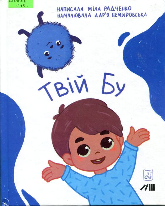 Б52628 821.161.2 Р15 Радченко, М. Твій Бу / М. Радченко ; худож. Д. Немировська. – Київ : Маміно, 2025. – 32 с.: іл. кольор. – (Державна програма – 2025). Знаєте, хто такі букомари й чому вони живуть під ліжком? Де ховаються загублені іграшки, шкарпетки і, головне, чому вони раптово зникають? Про це розповість герой оповідання – страшенно таємничий Бука, кумедний і дуже самотній монстрик, якому вдалося потоваришуватися з Богдасиком. Ця чарівна історія допоможе стати сміливими дослідниками підліжкової темряви, а ще й навчить весело й захопливо проводити час, коли навколо згасає світло.