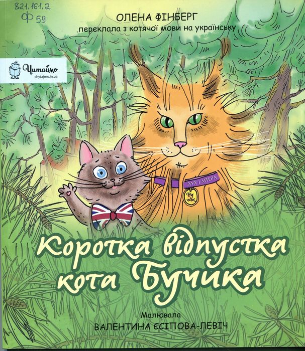 Б52642 821.161.2 Ф59 Фінберг, О. Ф. Коротка відпустка кота Бучика / О. Ф. Фінберг ; худож. В. Єсіпова-Левіч. – Київ : ДУХ І ЛІТЕРА, 2025. – 64 с. : іл. кольор. – (Державна програма – 2025). «Коротка відпустка кота Бучика» – це продовження розповідей рудого кота з міста Буча. Розповідь Бучика про війну, післявоєнну відбудову, міжнародну допомогу, солідарність людських і тваринних громад заради спільної справи. Тварини дотепно пояснюють дітям важливі моральні питання. Гумор та цікаві діалоги допомагають дітям увійти в світ героїв, відчути себе співучасниками подій. Пригодницький сюжет з елементами дитячого детективу утримують читацьку увагу до останнього рядка книги. Цікаві уроки англійської мови – чудова мотивація для юних читачів вивчати іноземні мови.