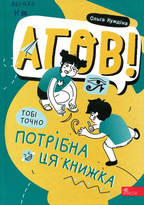 Б52640 821.161.2 К88 Куждіна, О. Агов! Тобі точно потрібна ця книжка / О. Куждіна ; худож. Д. Тригуб. – Харків : АССА, 2025. – 128 с. : іл. – (Державна програма – 2025). Паперове видання «Агов! Тобі точно потрібна ця книжка» потрапляє до свого читача й хоче з ним познайомитися. Раптом у розмову втручається пан Нечитадло, який за все життя не прочитав жодної книжки, але переконаний, що читати - цілковите безглуздя. Тож Агов пропонує йому не читати, а порозважатися, бо за допомогою друкованого видання можна вирівняти поставу, зігрітися, охолодитися тощо. Поступово пан Нечитадло захоплюється спвлкуванням з Агов і … Хочете дізнатися, що з цього вийшло? Тоді саме час це зробити!