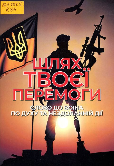 Б52672 821.161.2 К84 Крутов, В. В. Шлях твоєї перемоги. Слово до воїна по духу та нездоланній дії / В. В. Крутов. – Київ : Генеза, 2024. – 104 с. Ця книга – сердечне звернення до друга Воїна, образ якого зібраний зі світлих і прекрасних ликів синів та доньок України. До того, кого обпалило полум’я війни, та чиї рани – це символ святого Служіння і здатності попри все пізнати Життя та знайти свій Шлях.