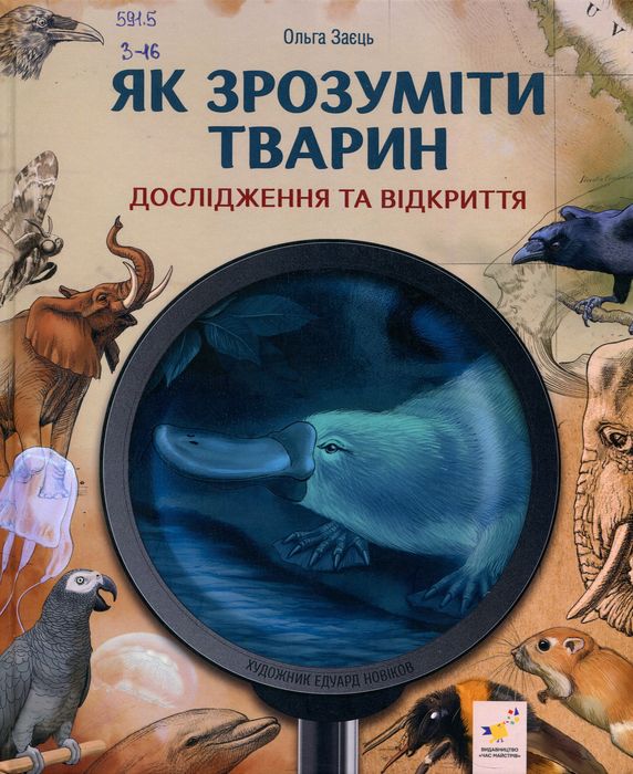 Б52648 591.5 З-16 Заєць, О. Як зрозуміти тварин: дослідження та відкриття / О. Заєць ; худож. Е. Новіков. – Київ : Час майстрів, 2025. – 144 с. : іл. кольор. – (Державна програма – 2025). Чи знаєте ви, що джмелі можуть грати у футбол? Точніше, вони вміють навчатися, а отже, можна натренувати джмеля забивати крихітні м’ячі у крихітні ворітця. Ось вам і найкрутіший форвард у світі комах. Як Мессі, тільки не Ліонель, а Джміліонель! Хто навчив його такого? Науковець, який досліджував здібності джмелів. Інша ж дослідниця вивчала особливості поведінки слонів. Завдяки своїм спостереженням вона змогла описати та розшифрувати мову, якою слони спілкуються між собою. "Бруууп-брууп-бруп", – такими звуками слон покликав би вас грати разом. Ця книжка розповість про дослідження та неймовірні відкриття щодо тварин. У веселій та дотепній формі тварини розкажуть про себе самі: оповідь ведеться їхніми голосами. Книжка заохотить до власних експериментів. У такий спосіб дитина реалізує природну потребу пізнавати світ довкола. Нумо разом дізнаватися цікавинки про життя тварин і про те, яким чином зоологи здійснюють наукові відкриття!