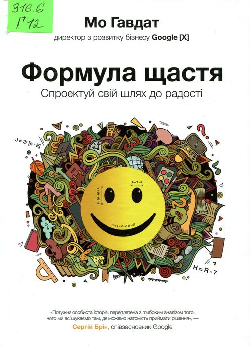 А47886 316.6 Г12 Гавдат, М. Формула щастя. Спроектуй свій шлях до радості / М. Гавдат ; пер. з англ. О. Чупи. – Київ : Кі Фанд Медіа, 2018. – 384 с. Мо Гавдат – донедавна директор з розвитку бізнесу в X, елітній команді інженерів, які працюють на футуристичну «фабрику мрії» Google. Саме тут розробляються окуляри доповненої реальності, безпілотні автомобілі та нейронні мережі. Щастя стало для Мо таким самим «авантюрним» проектом. Розбираючи цей проект на частинки, роздивляючись одну за одною проблеми, що заважають його втіленню, крок за кроком він показує, як можна радіти життю щохвилини – навіть тоді, коли воно завдає удару. А що як щастя – не манна з неба, не філософська категорія й навіть не хімічний процес? Що вийде, коли подивитися на нього як на інженерний проект? Чи існує алгоритм, математична формула, що дозволяє самостійно побудувати своє щастя, незважаючи на зовнішні обставини? Так, каже автор цієї дуже логічної – і разом з тим неймовірно щирої й зворушливої книжки.