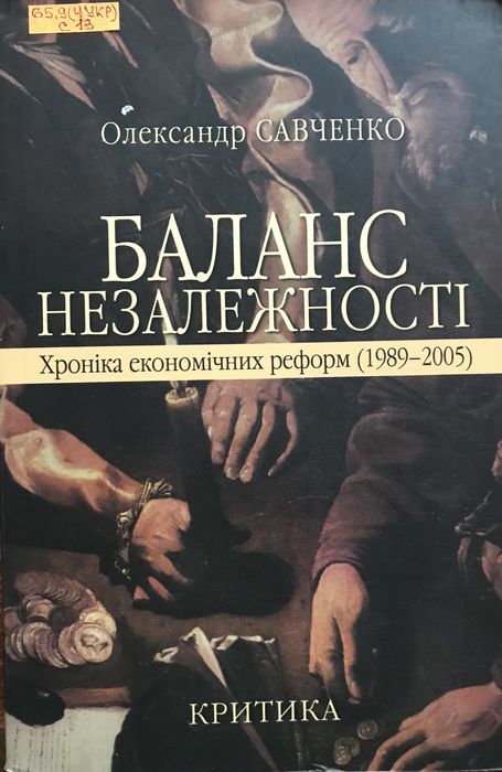 Б45065 65.9(4УКР) С13 Савченко О.В. Баланс незалежності. Хроніка економічних реформ 1989-2005 / О. Савченко; ред. В. Дивнич. - Київ : Критика, 2006. - 255 с. До книжки знаного економіста Олександра Савченка зібрано його газетні та журнальні публікації, найраніші з яких з`явилися в пресі ще за часів УРСР, коли економічна та політична незалежність України потребувала теоретичного обґрунтування, а не практичного захисту і підтвердження, чим автор зайнятий нині – на посаді заступника Голови Національного банку України і в численних статтях та інтерв`ю, по які до нього як визнаного фахівця у банківській справі (в різні роки – виконавчого директора Європейського банку реконструкції та розвитку, голови правління австрійського банку «Creditanshtalt Ukraine», голови правління Міжнародного комерційного банку) охоче зверталися засоби масової інформації.