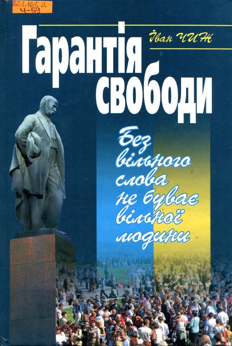А23201 821.161.2 Ч-59 Чиж І. С. Гарантія свободи. Без вільного слова не буває вільної людини : за матеріалами радіоциклу «Конституцією гарантовано» / І. С. Чиж. – Київ : Навчальна книга, 2004. – 334 с. Видання є своєрідним коментарем Конституції суверенної і незалежної України з питань суверенної галузі.