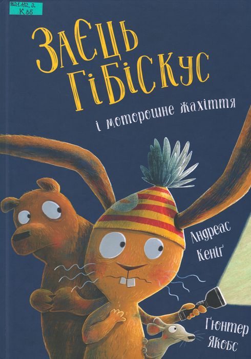 821.112.2 К35 Кеніг, Андреас. Заєць Гібіскус і моторошне жахіття / А. Кеніг ; пер. з нім. О. Сидор ; худож. Г. Якобс. – Харків : Жорж, 2025. – 32 с. : іл. кольор. – (Заєць Гібіскус) (Час із книгою). У Лісдорфі вирує негода! Через сильний вітер у будинку зайця Гібіскуса зникло світло. Кімнати поглинає темрява, а знадвору лунають моторошні скреготливі звуки… Може, то гігантський іржавий робот, що полює на зайців, або тиранозавр рекс, або велетенська комаха? Без вірних друзів тут не розібратися. Разом вони швидко подолають і жахливих монстрів, і найбільші страхи!