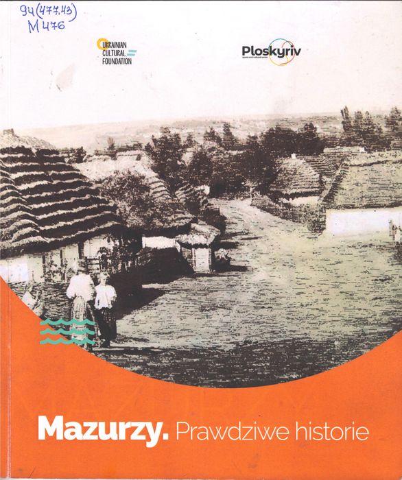 94(477.43) M476 Mazurzy. Prawdziwe historie: спогади. – Chmielnicki, 2019. – 61 s. Пропоноване видання містить правдиві історії мазурів, етнографічну групу поляків, які мігрували з історичного регіону Мазовії на Поділля (сучасна Хмельниччина). Мазури завжди трималися разом, мали згуртовану громаду, що допомогло їм зберегти та розвинути автентичну культуру в умовах політики асиміляції, репресій та переслідувань, яка почалася ще за часів царської Росії та продовжилася за радянської влади. У книзі зібрані спогади нащадків перших переселенців про історію, побут, культуру мазурів.