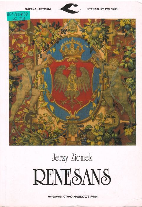 821.162.1.09 Z79 Ziomek, Jerzy. RENESANS : літературний огляд. – wyd.XI. – Warszawa, 2008. – 480 s. : іл. кольор. Наступний том із серії академічних синтезів «Великої історії польської літератури». Протягом багатьох років книга слугувала незамінним компендіумом для польських науковців, викладачів та науковців. У праці розглядаються інтелектуальні тенденції епохи Відродження, польська та зарубіжна література. На тлі європейської культурної спільноти автор визнає важливість авторської особистості таких польських авторів, як Рей, Кохановський, Моджевський та Сеп Шаржинський. Сильною стороною «Ренесансу» є його жвавий плин та прекрасна польська мова. Поточне видання перероблено Яніною Абрамською, бібліографію модернізовано, а ілюстративний матеріал розширено додатковими кольоровими ілюстраціями.