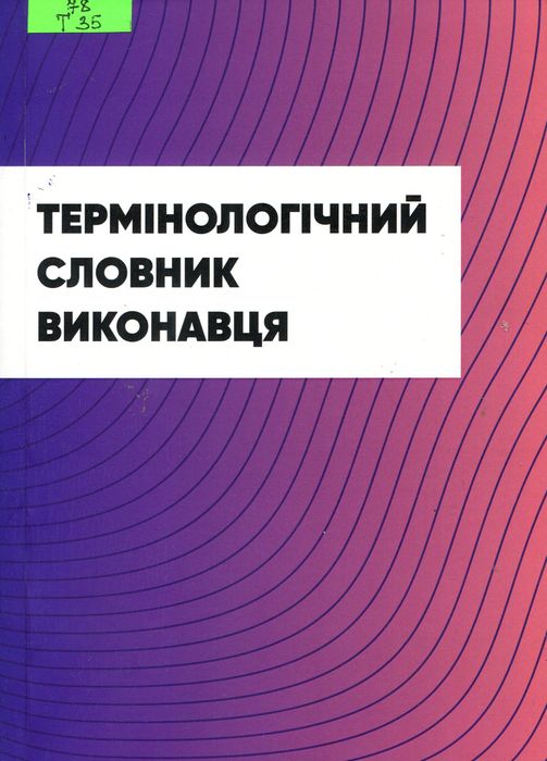 А47796 78 Т35 Термінологічний словник виконавця / авт.-уклад. В. М. Откидач. – Харків : Міська друкарня, 2025. – 90 с. Даний словник адресований передусім виконавцям-інструменталістам, які виступають самостійно або у складі різних творчих колективів. В словнику подається різноманітний творчий інструментарій, аксесуари, а також все, що стосується інструментального виконавства.