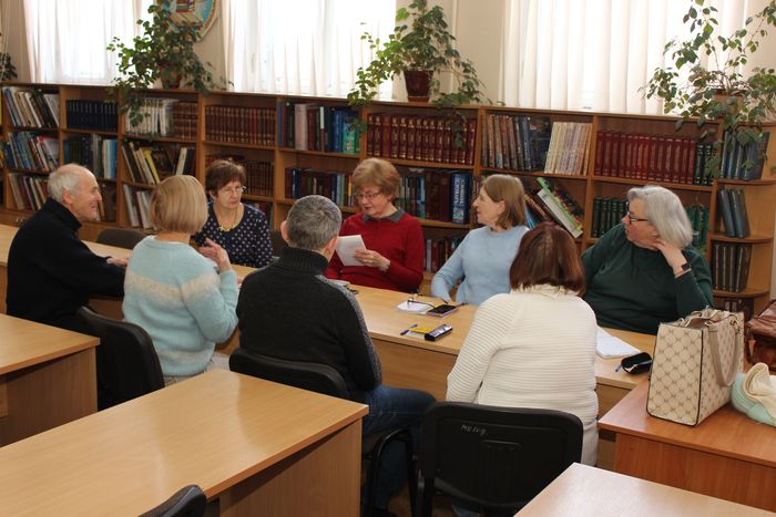 English Speaking Club щовівторка, модератор - Наталія Давидко: на початку зустрічі присутні разом заспівали пісню «Yellow Submarine», тренуючи навички говоріння. Потім повторили вживання Present Continuous та типи умовних речень в англійській мові, вивчали ідіоми з теми «Habits», виконували вправи для закріплення матеріалу та розповідали про свій розпорядок дня англійською мовою.