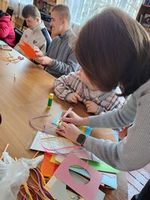 Практична частина заходу стала справжнім простором для творчості: учні власноруч виготовляли святкові листівки в техніці аплікації. Використовуючи кольоровий папір, клей і декоративні матеріали, вони створили яскраві вироби, прикрашені оригінальними елементами.
