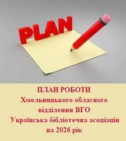 План роботи Хмельницького обласного відділення ВГО Українська бібліотечна асоціація на 2023 рік.Відділення буде працювати під девізом «Бібліотека - твоя синергія перемоги».
