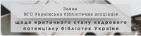 Заява ГО «Всеукраїнська громадська організація Українська бібліотечна асоціація» щодо критичного стану кадрового потенціалу бібліотек України як стратегічного складника національної безпеки, демократії та розвитку людського капіталу