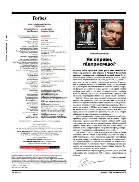 Тема одного з випусків «Forbes Ukraine» за 2025 рік: «Три роки війни: як змінилася економіка України та хто веде її вперед».