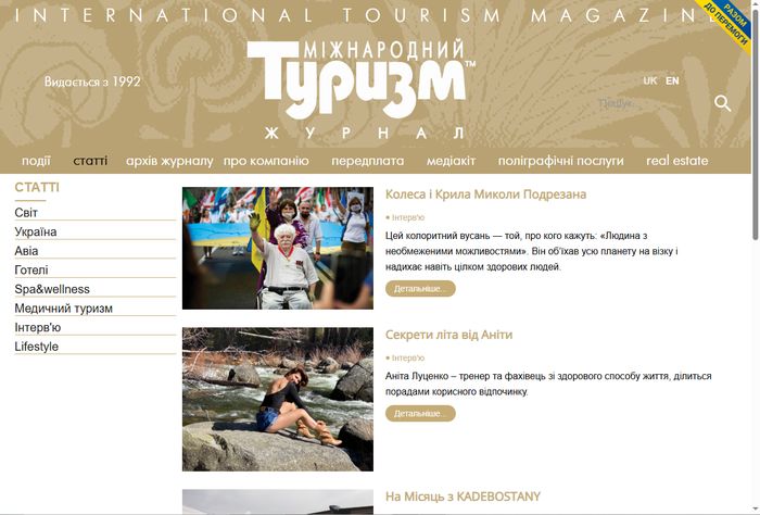 Читачі можуть ознайомитись з офіційним сайтом «Міжнародного туризму» за посиланням: https://intour.com.ua/