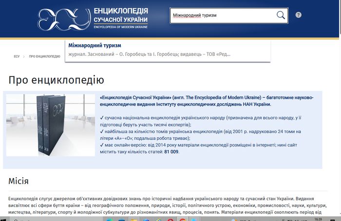 Користувачі можуть ознайомитись з енциклопедичною статтею про журнал «Міжнародний туризм» в Енциклопедії сучасної України: https://esu.com.ua/article-65151